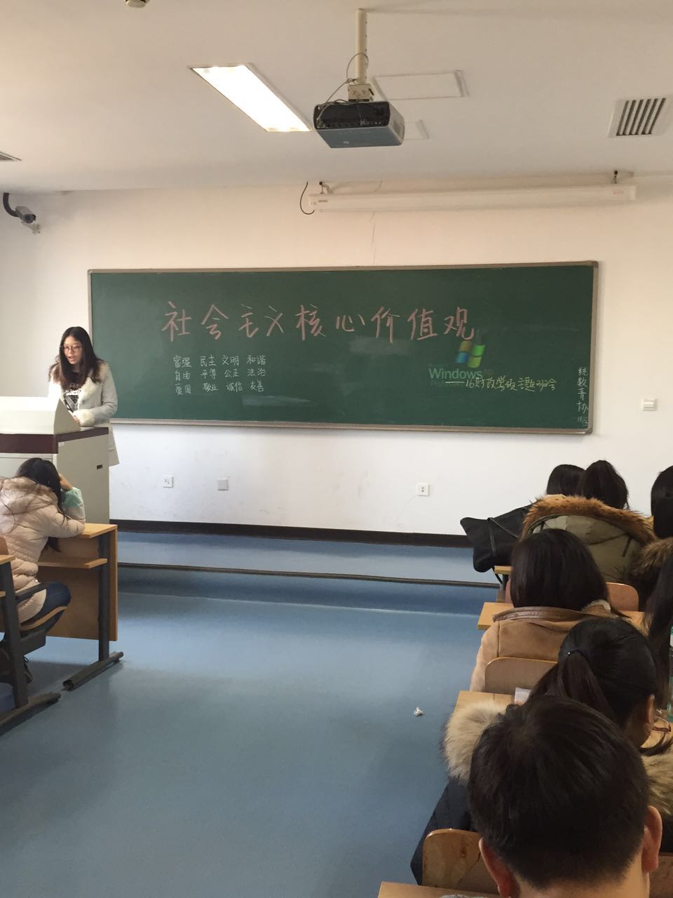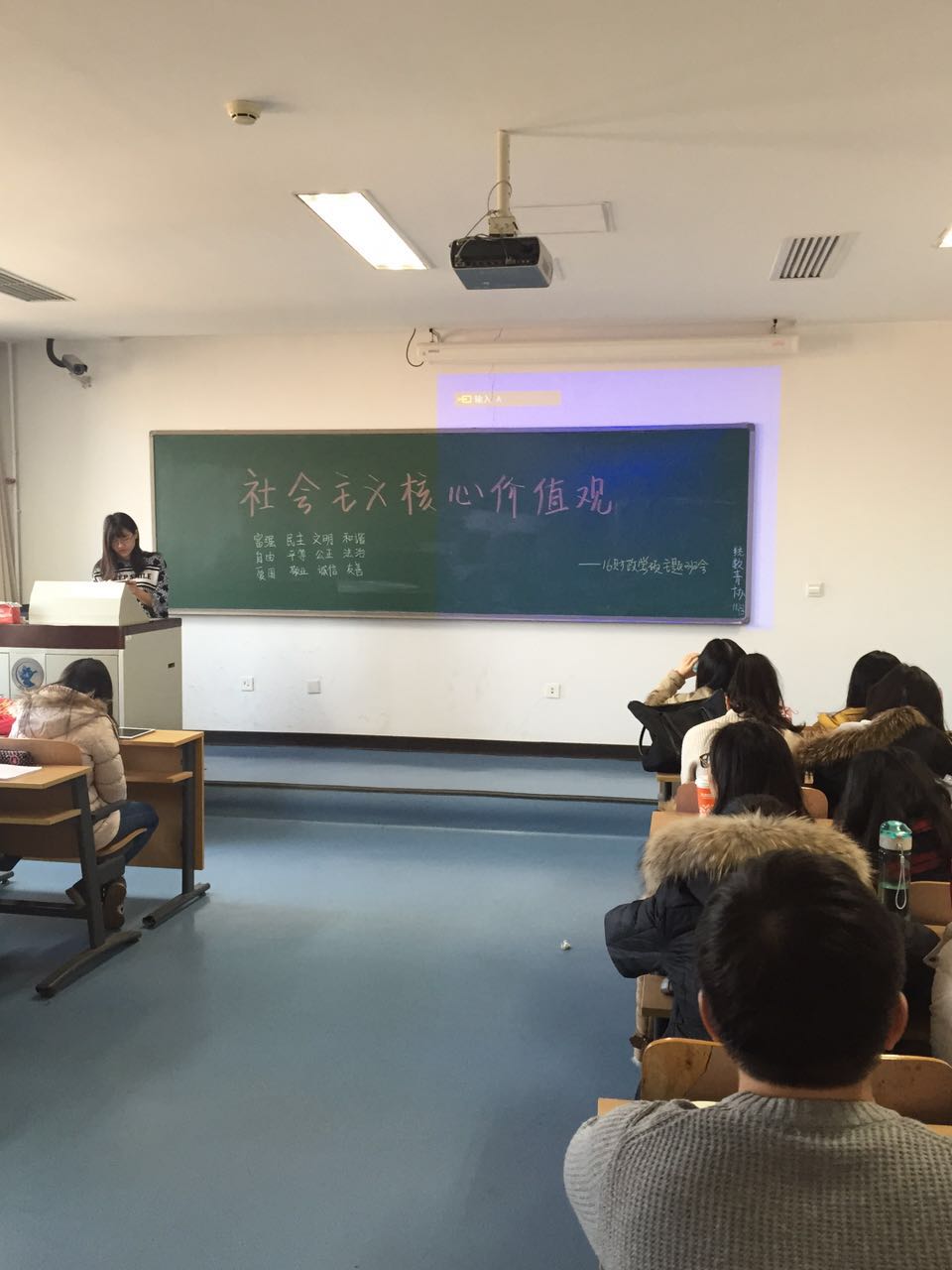 为了正确树立和大力弘扬社会主义核心价值观,用社会主义核心价值观引领学校德育工作,11月24日,16财政学硕士班开展了“社会主义核心价值观”主题班会活动。 在团支书刘银乔的主持下,大家一起围绕社会主义核心价值观讨论了多个问题,围绕富强、民主、文明、和谐、自由、平等、公正、法治,倡导爱国、敬业、诚信、友善展开了自己观点的论述。