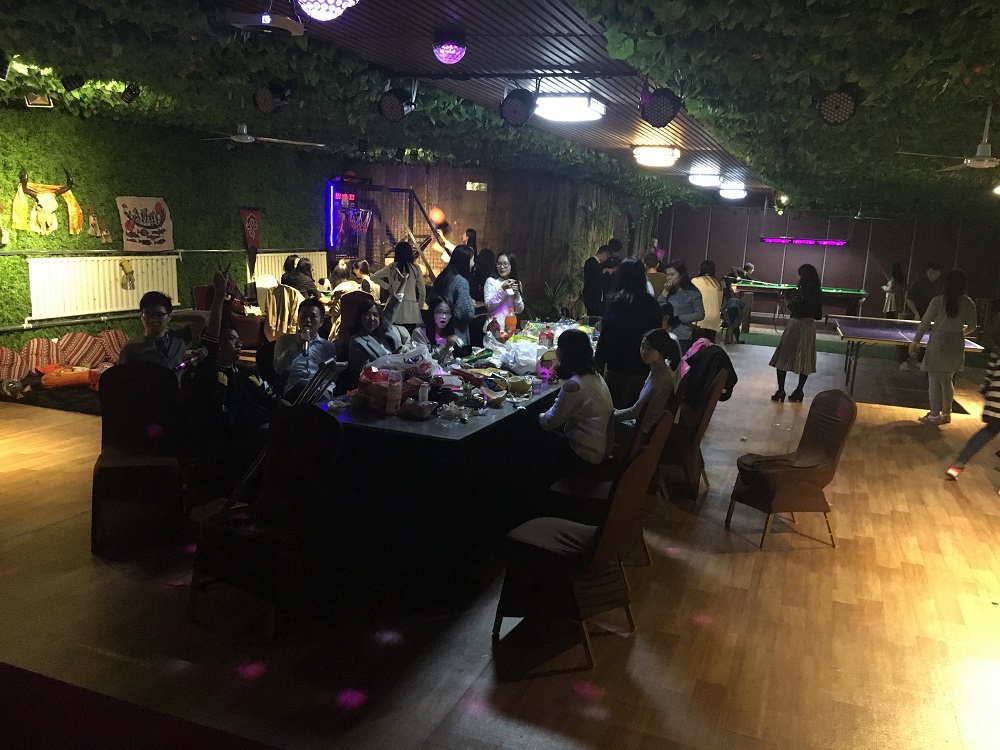 其后,同学们开展了各种各样的娱乐活动。麦霸们手拿麦克风唱出着一首首激情洋溢的歌,烘托出热闹的气氛。爱好体育的同学围在球台四周进行着欢快而激烈的乒乓球赛。有人玩着桌游,有人温一壶浓茶对弈,还有一些同学吃着零食,聊着天南地北的新鲜事。热情的气氛一直持续到深夜。仅一个晚上的时间,学生彼此间更加熟悉、亲切。