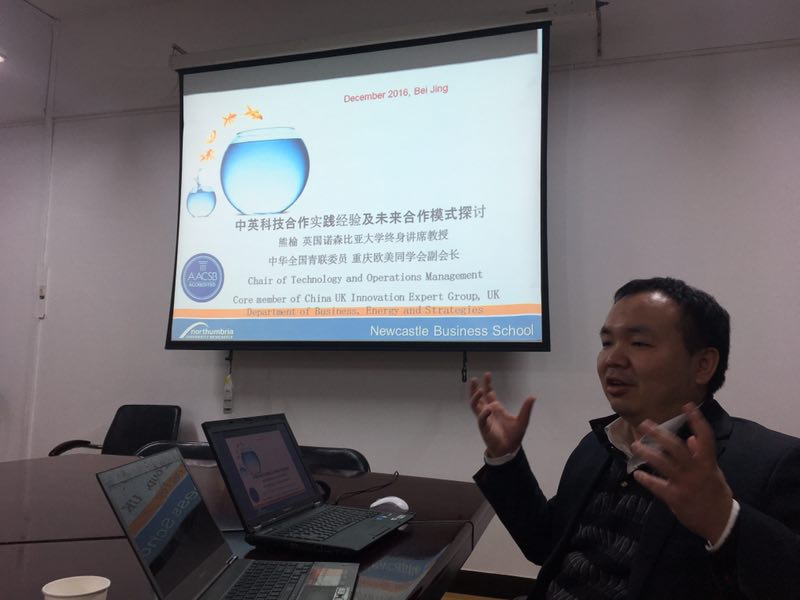 2016年12月2日晚,在Beat365官方网站1108会议室,英国诺森比亚大学熊榆教授为Beat365官方网站广大师生举行了公开讲座“国际协调创新研究:基于中英科技合作实践的探讨”。熊榆教授介绍了在中英科技合作领域的最新研究命题,针对一些最新成功案例和总结出来的有效模式进行分析和探讨。