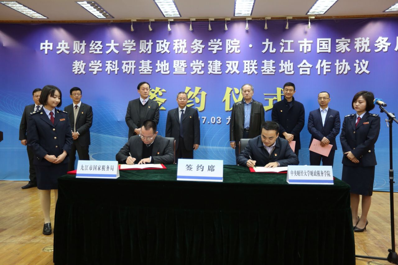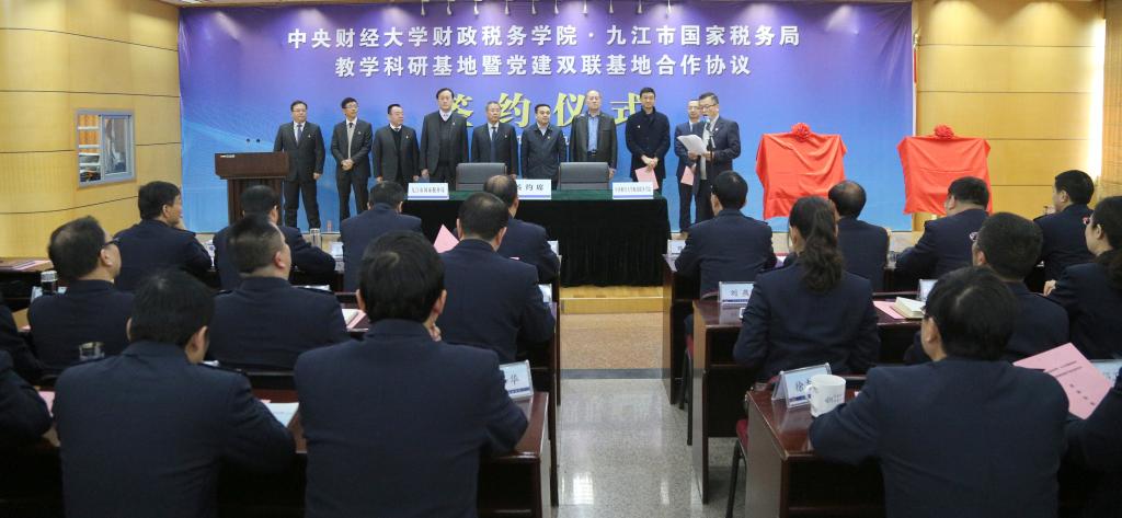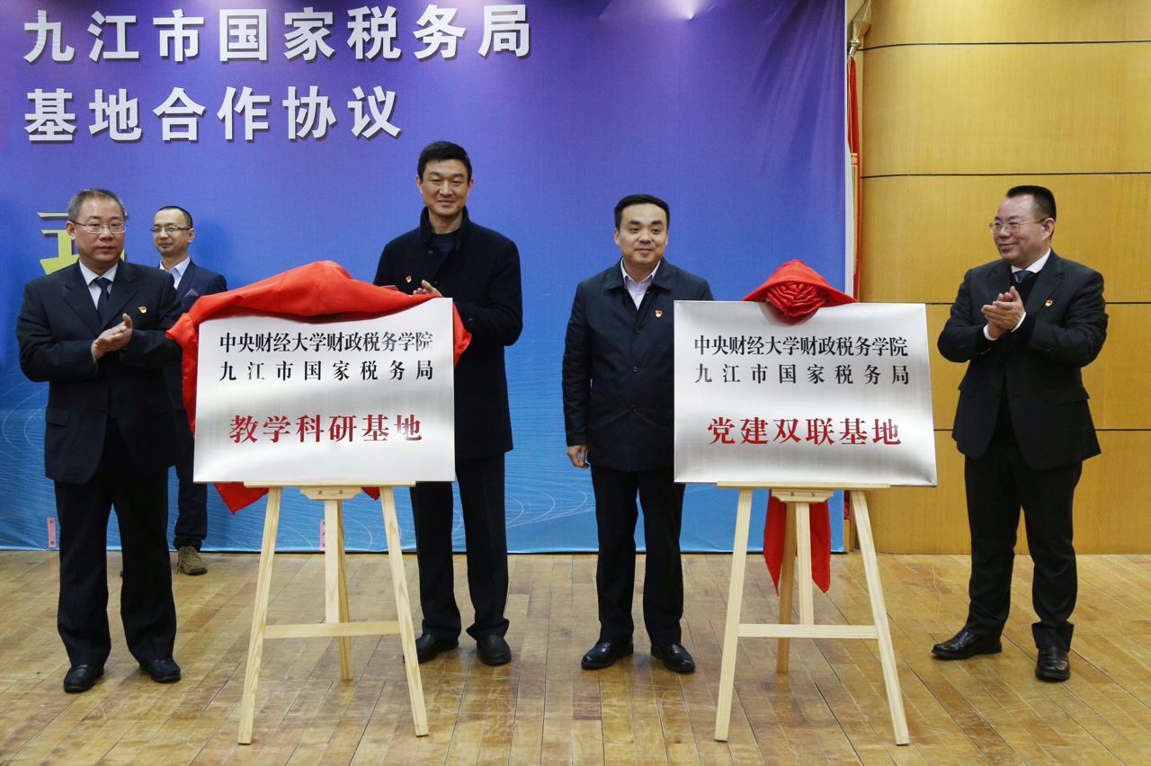 Beat365官方网站党委书记樊勇教授与九江市国税局党组成员、副局长邹俊共同签约并为基地揭牌。