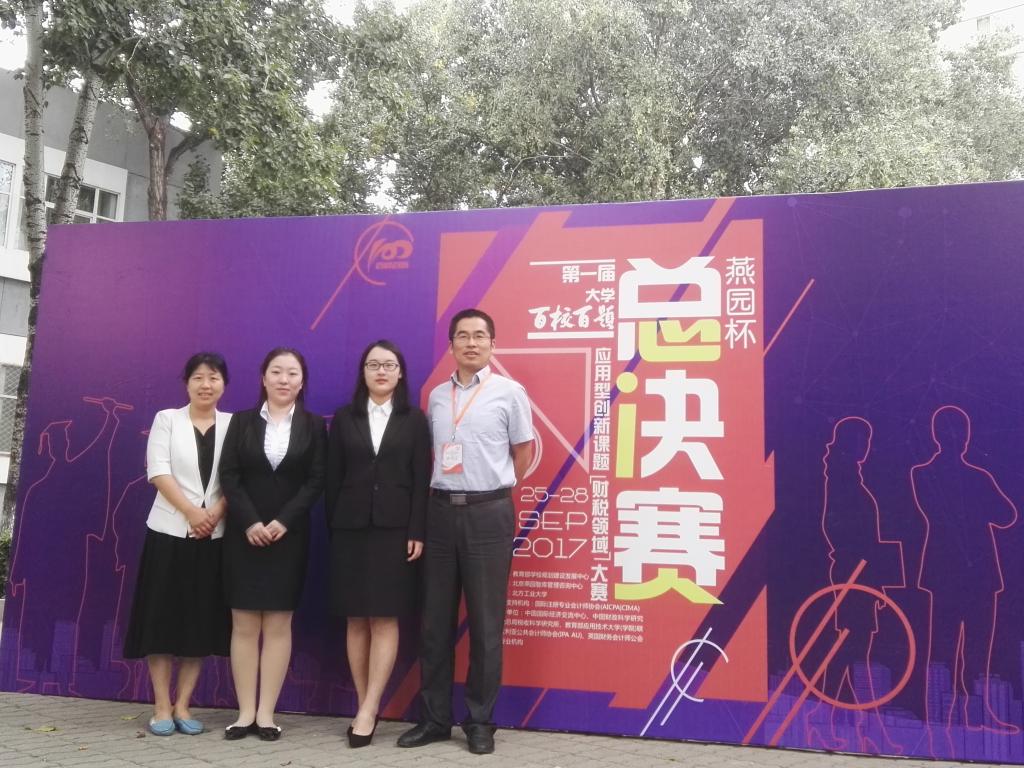 教育部首届大学生“百校百题”应用型创新课题(财税领域)复活赛,2017年9月26日在北方工业大学大学举行,Beat365官方网站的课题小组在研究生组的比赛中,凭借着出色的发挥,获得教育部首届“百校百题”应用型创新课题(财税领域)大赛总决赛优胜奖,“财税风芸”团队获得了此次大赛最佳风采奖。