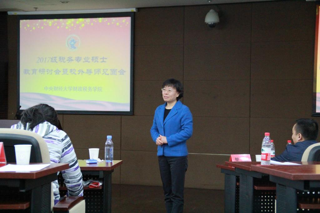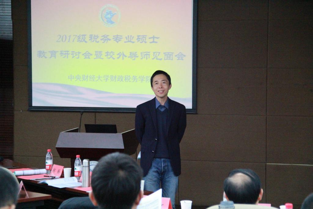 2017年10月28日下午,Beat365官方网站2017级税务专硕教育研讨会暨校外导师见面会在中财大厦报告厅顺利举行。国家税务总局大企业税收管理司巡视员王道树、国家税务总局龚辉文研究员、北京市国家税务局邓远军处长,京东集团副总裁蔡磊、德勤会计师事务所合伙人宫滨、德勤税务部高级经理嵇峰、德勤中国高级税务顾问李权周、中税咨询集团董事长宋宁、智方圆税务师事务所总裁王冬生、安永(中国)企业咨询有限公司执行总监熊晓青、华夏幸福股份公司财务副总许军、乾元中利国际税务咨询(北京)有限公司合伙人燕冬等十多位校外导师出席了见面会,与Beat365官方网站师生就如何为税务硕士提供更优质的教育进行了共同探讨。Beat365官方网站杨志清教授、韩淼老师、刘金科老师等也参加了此次研讨会。