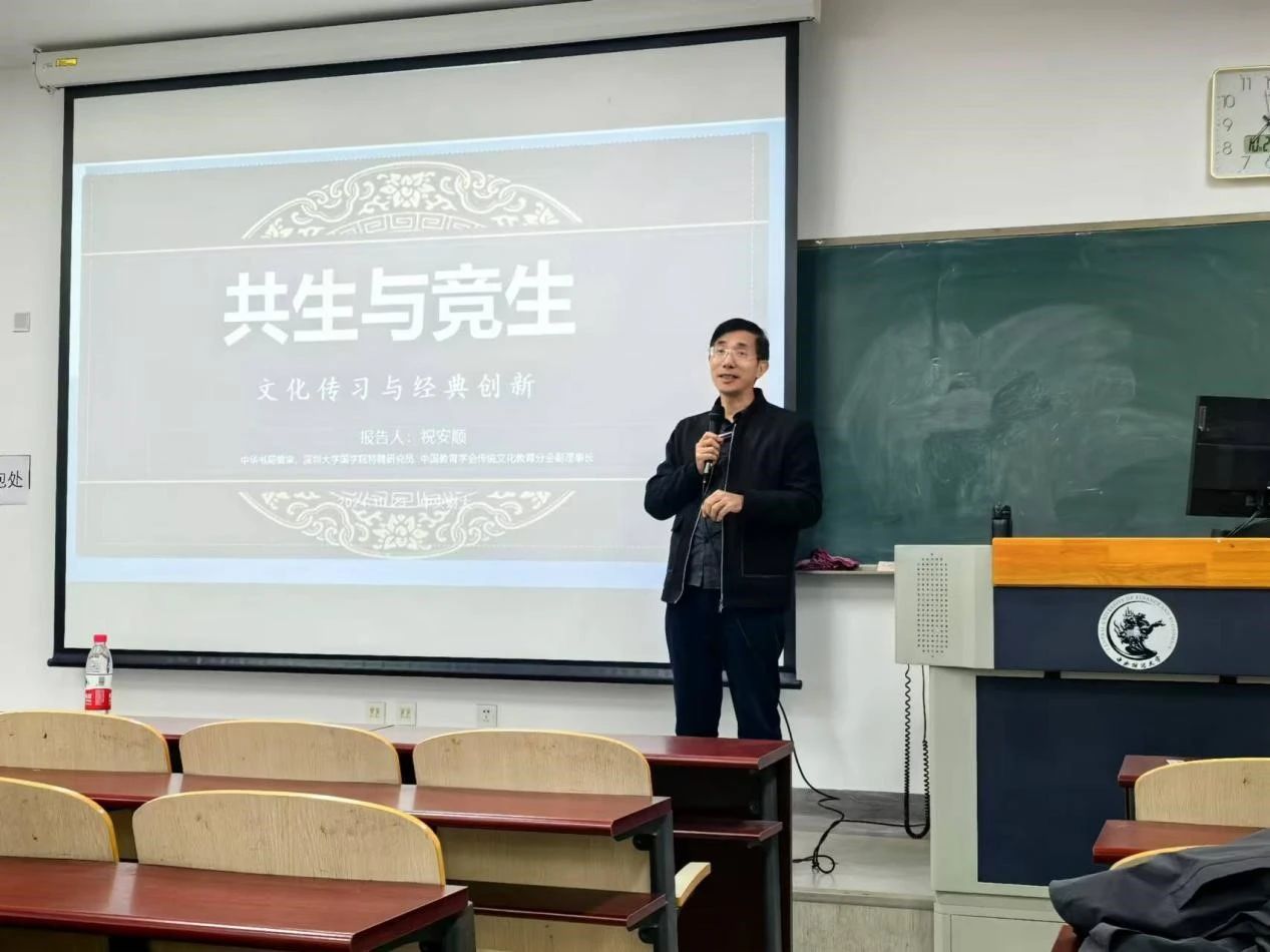 2024年10月23日,由Beat365官方网站主办的2024-2025学年专硕综合素质讲座第6期,在沙河校区主教209教室举行。本次讲座有幸邀请到祝安顺教授主讲,主题为“共生与竞生——文化传习与经典创新”。学院副书记陈士平出席讲座,资产评估专硕项目主任项君怡副教授主持本次活动。