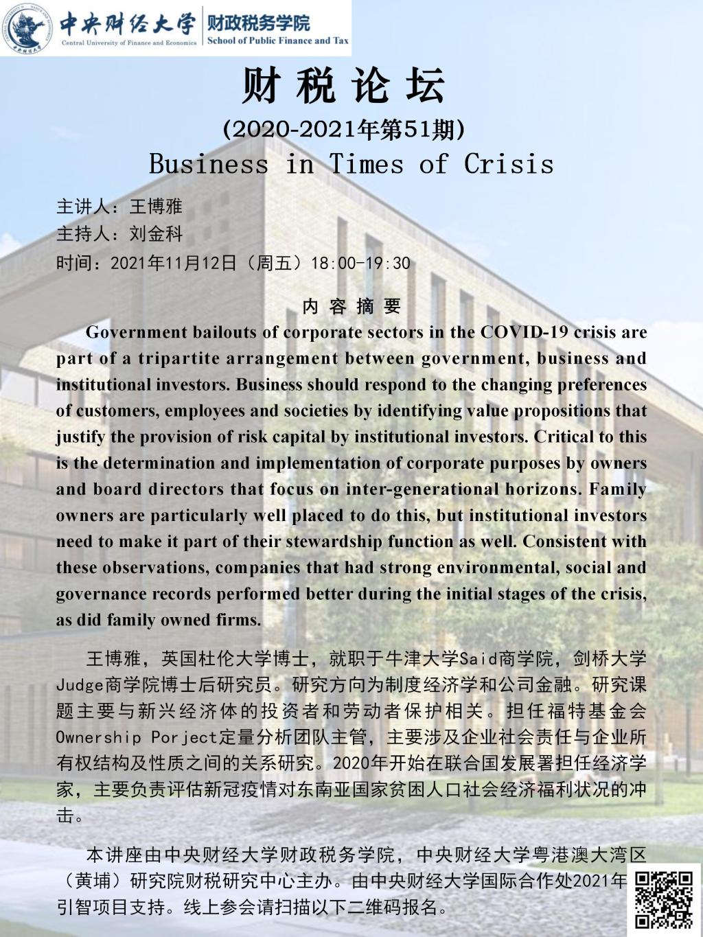 上一篇:财税学院举办“COVID 19 Fiscal Challenges for U.S. State and Local Governments”讲座