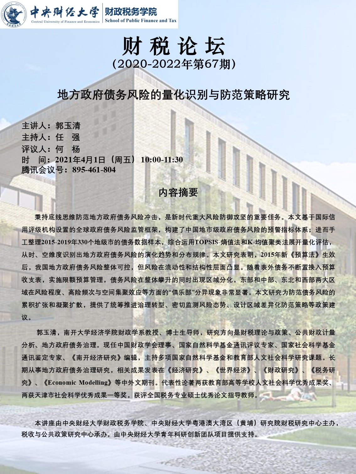 Beat365官方网站举办“地方政府债务风险的量化识别与防范策略研究”讲座