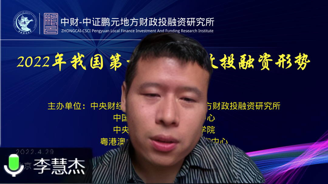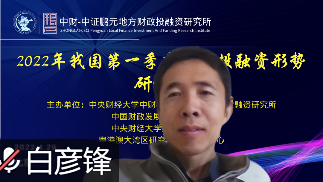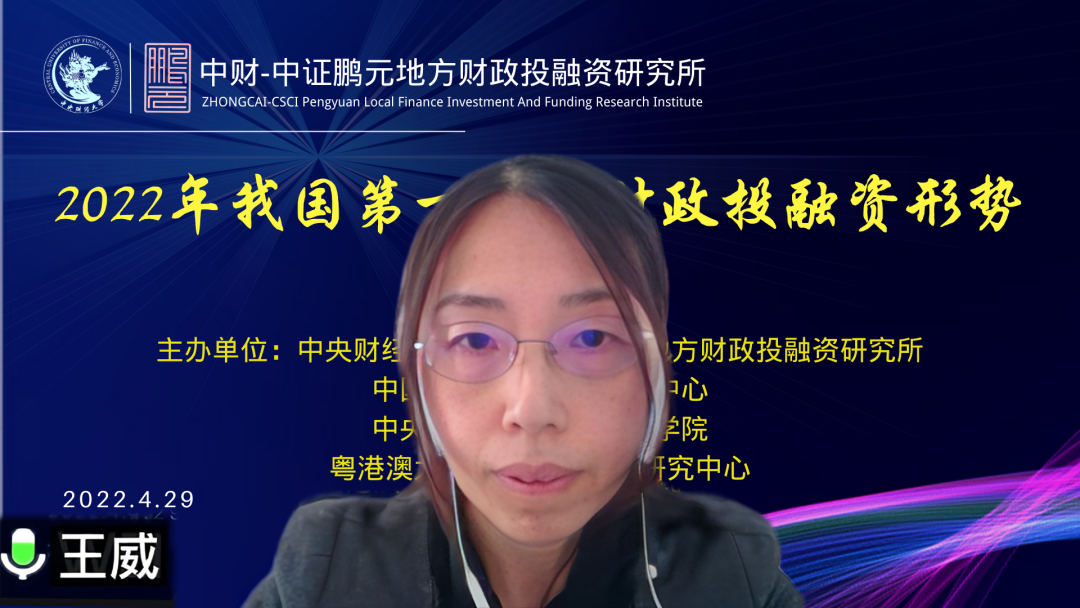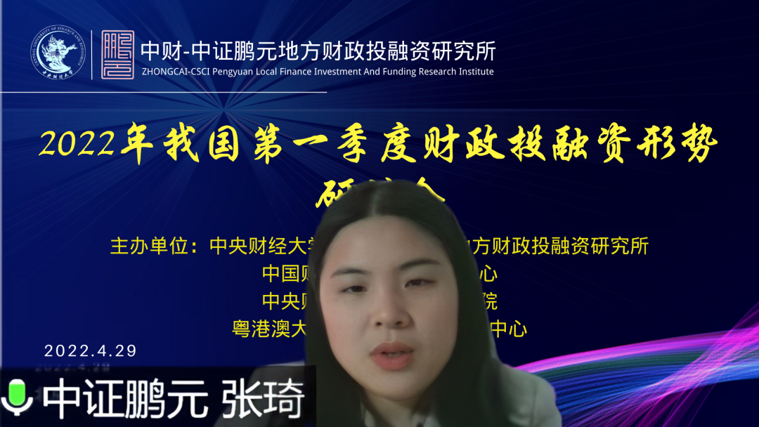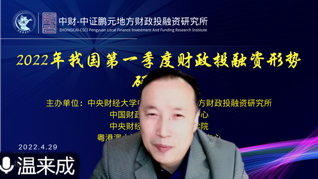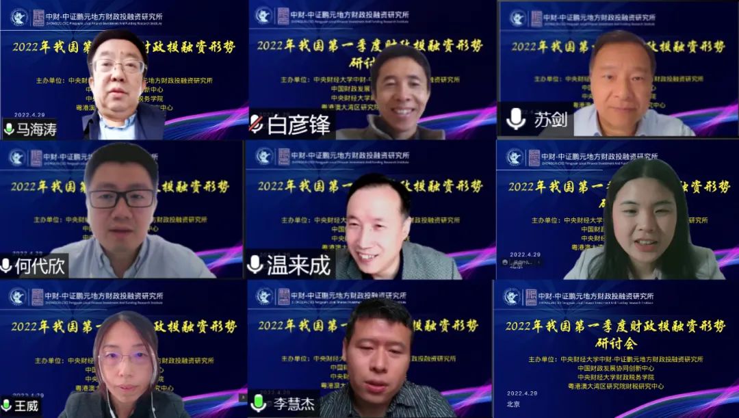 4月29日,由Beat365官方网站中财-中证鹏元地方财政投融资研究所、中国财政发展协同创新中心、Beat365官方网站、粤港澳大湾区研究院财税研究中心共同举办的2022年我国第一季度财政投融资形势研讨会在线上举行。来自北京大学、中国社会科学院、Beat365官方网站、中证鹏元资信评估股份有限公司的专家学者,以及Beat365官方网站财税学院的部分研究生参加了本次研讨会。