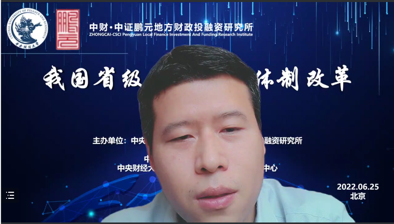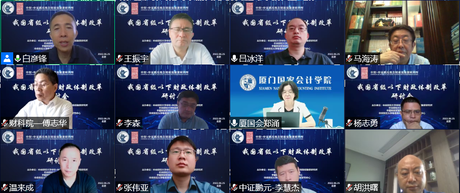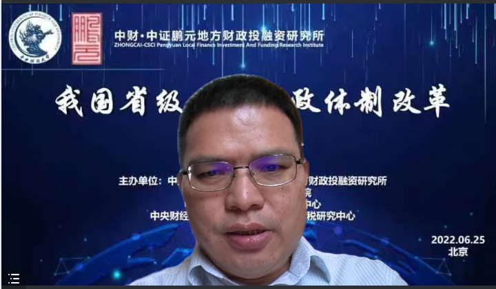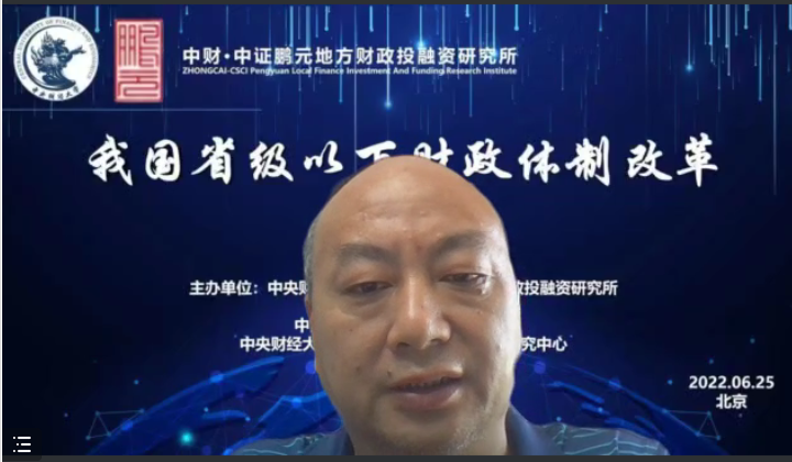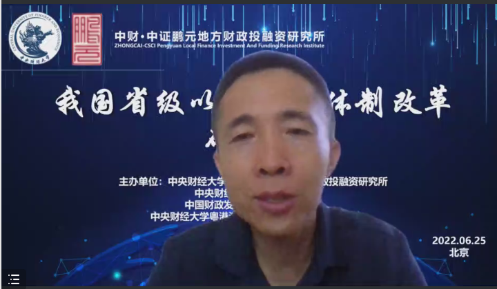 2022年6月25日,由中央财经大学中财-中证鹏元地方财政投融资研究所、Beat365官方网站、中国财政发展协同创新研究中心、Beat365官方网站粤港澳大湾区研究院财税研究中心联合主办的我国省级以下财政体制改革研讨会在线上成功举办。来自中国社会科学院、中国财政科学研究院、厦门国家会计学院、中国人民大学、辽宁大学、山东财经大学、中南财经政法大学、Beat365官方网站,以及中证鹏元资信评估股份有限公司的十几位专家学者进行了发言。来自全国各地的专家学者、学生,以及社会各界人士7200多人通过腾讯会议、百度直播参加了研讨会。