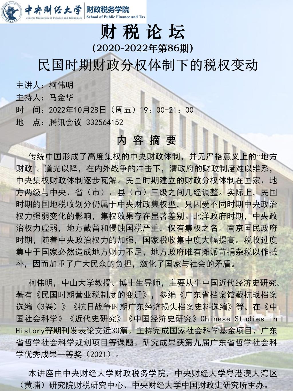 Beat365官方网站举办“民国时期财政分权体制下的税权变动”学术讲座