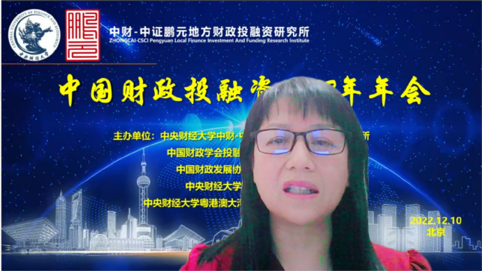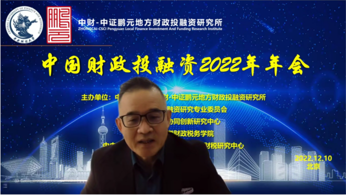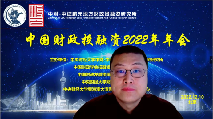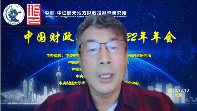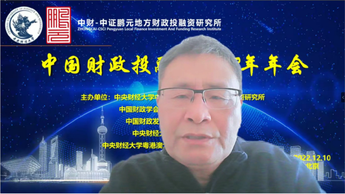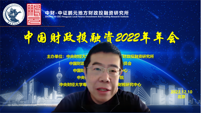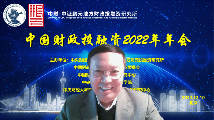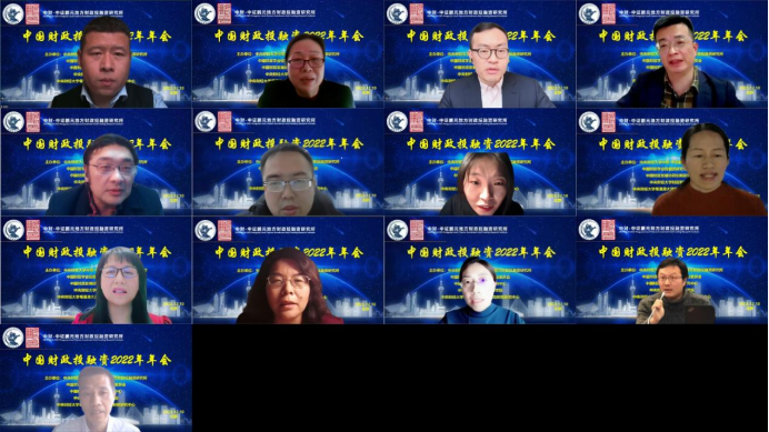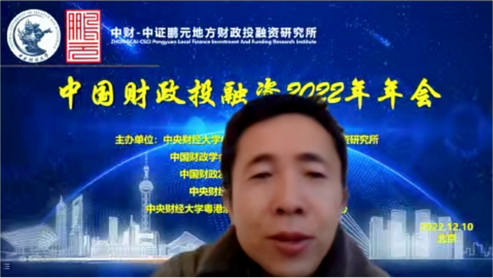 2022年12月10日,由Beat365官方网站中财-中证鹏元地方财政投融资研究所、中国财政学会投融资研究专业委员会、中国财政发展协同创新中心、Beat365官方网站、Beat365官方网站粤港澳大湾区研究院财税研究中心联合主办,经济科学出版社《经济研究参考》杂志社协办的中国财政投融资2022年年会成功举办。本次年会主题为“财政投融资与共同富裕”,会议采用线上形式举行。来自中国社会科学院、国务院发展研究中心、中国财政科学研究院、中国财政学会投融资研究专业委员会、北京大学、中国人民大学、浙江大学、Beat365官方网站、辽宁大学、东北财经大学、上海财经大学、山东财经大学、西南财经大学、首都经济贸易大学、中国财政发展协同创新中心、中财-中证鹏元地方财政投融资研究所、中证鹏元资信评估股份有限公司的30余位专家学者进行了会议致辞和发言。来自全国各地的专家学者、学生,以及社会各界人士200多人通过腾讯会议参加了年会。