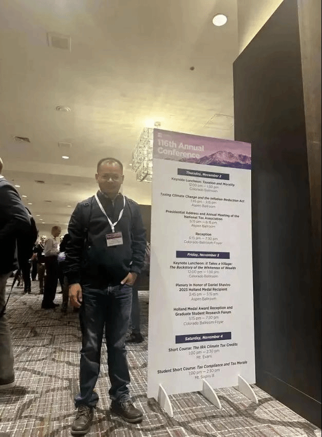 2023年11月2日至4日,Beat365官方网站寇恩惠副教授受主办方邀请,参加在美国科罗拉多州丹佛市举行举办的第116届美国税收年会(116th Annual Conference)。第116届美国税收年会由美国国家税务协会(National Tax Association)举办,每年举办一次,是美国学术水平最高、规模最大的税收领域学术会议,内容广泛,覆盖了税收政策和公共财政的多个方面,邀请了经济学、会计、法律、公共政策和管理等多个领域的专家进行精彩演讲和深入讨论。