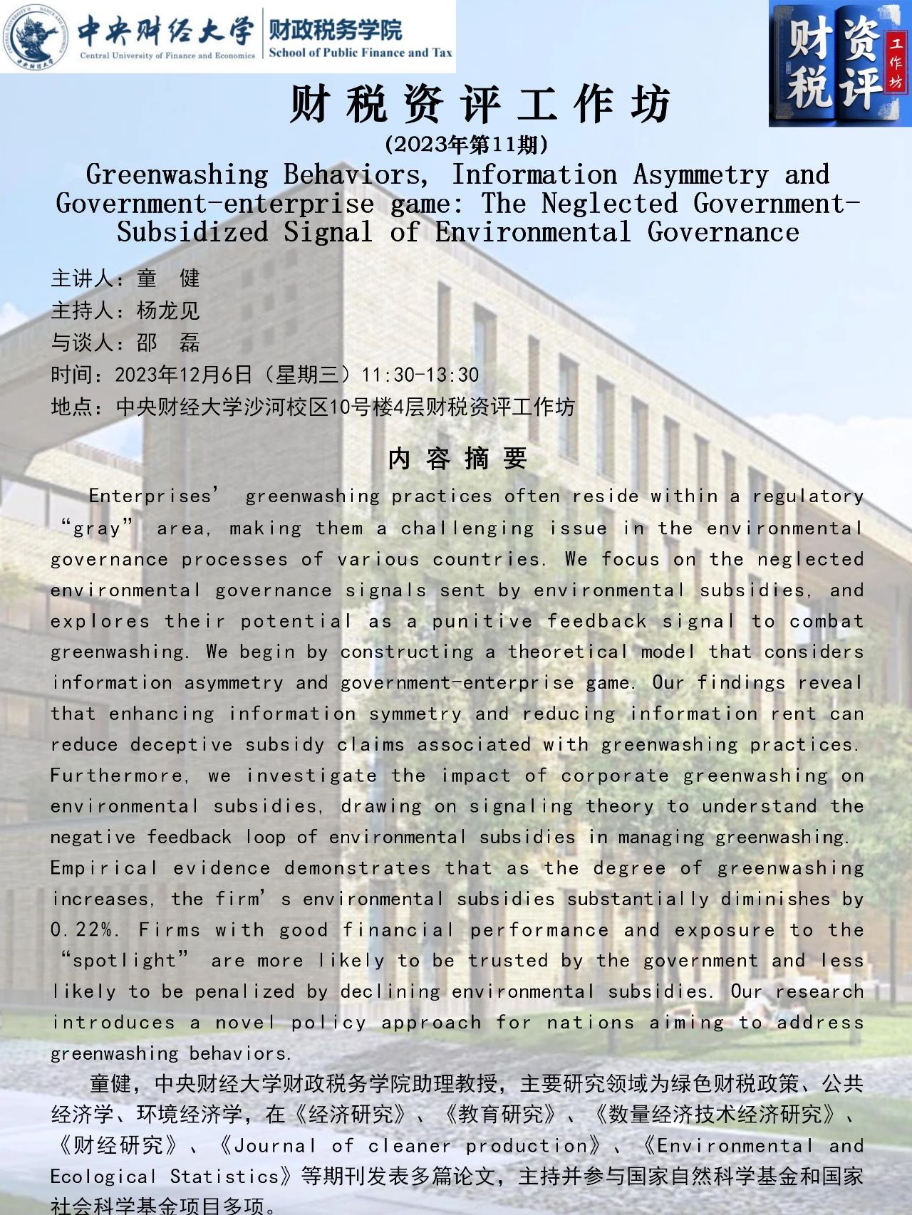 “中财-乔治亚州立”公共财政国际学术前沿系列第三期讲座顺利举行
