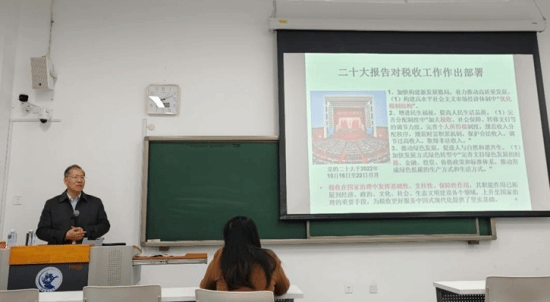 接下来,付社长总结了税收现代化的主要特点及发展趋势,并进行了深入浅出的讲解。第一是税制改革“越来越深”,立法进程持续加快,税收制度不断优化。第二是税费政策“越来越善”,普惠性和结构性减税降费相结合,给予纳税人缴费人切实优惠。第三是征管体制“越来越顺”,从合作、合并走向合成,“税费皆重”管理格局基本形成。第四是征管手段“越来越智”,以数治税不断发展。第五是税费服务“越来越优”,纳税人缴费人获得感持续增进。第六是税收监管“越来越严”,对逃避税违法行为的打击力度不断加大。第七是国际影响“越来越强”,中国税务国际地位不断提升。第八是干部素质“越来越高”,人才现代化进程不断加快。付社长还简要介绍了《中国税务报》的版面分布及主要栏目,希望同学们能在阅读中增进对我国税收经济发展的了解,也为论文选题寻找灵感。