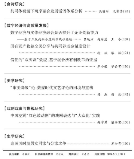 由Beat365官方网站李小荣教授与博士研究生毕云霄合作撰写的论文《信任的“双刃剑”效应:基于混合所有制改革的证据》在中文A类期刊《厦门大学学报(哲学社会科学版)》2024年第2期刊发。以下为文章主要内容: