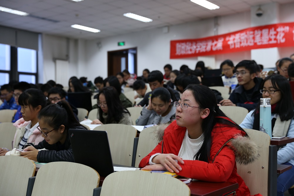 胡昕先生还与在场的学生进行了互动交流。有学生提问我们眼下应该考取证件还是专心于基础的课程。就此胡昕先生通过举例向大家说明考证对日后的工作并没有长久的影响,工作中实务重于形式。大家日后的工作远非神圣,亦不繁杂,它考验的是工作的方法,所以大家现在应该养成良好的生活、学习习惯,先打好基础、拓宽视野,再去考虑考证的问题。还有同学提问阅读哲学类书籍对财经方面的工作有何益处,胡昕先生借此向大家推荐了《国富论》这本书,通过对书籍内容的阐释解答了同学的困惑。