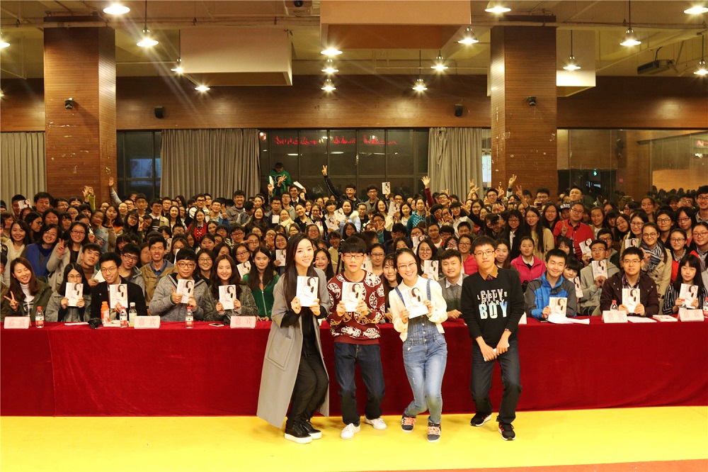 在本次活动的最后一个环节中,李思思联系自身在北大求学的经历,告诫大学生们“兼容并包”,在大学开阔视野,感受大学之大。教室中气氛热烈融洽,同学们由衷地爆发出一阵阵笑声、掌声。在谈及对当代大学生的建议时,李思思认为,当代大学生太容易关注别人生活中的热闹,太多去外观这个世界,而忽略了自己的内心。告诉大学生们要珍惜大学时光,多读书,多参与生活。提问结束后,李思思与同学们合影留念,至此,本次交流会活动圆满结束。