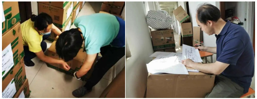 连日来,学院全体教师全部上阵,分批次开展行李打包邮寄和留置物品存放工作,学校财务处的老师们也自告奋勇,向学院伸出援助之手。第四组的老师们,有的已经年过花甲,身体欠安;有的老师六月份刚刚做过手术;有的老师家里孩子还很小……但他们都选择了向前和坚守,即使在收拾包裹中手被划伤也阻挡不了他们为学生打好每一件行李的信念。他们不仅仅是在打包行李,更是传递着母校、学院和老师们对2020届毕业生的浓浓爱意。