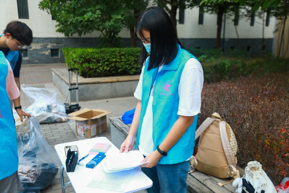 每一位捐献旧衣、参与其中的同学都值得感谢,每一位坚守岗位、细致认真的志愿者都值得称赞:同学们翻出自己压箱底的衣物,折叠整齐方便志愿者登记收拾,志愿者们不惧烈日,耐心登记并整理。