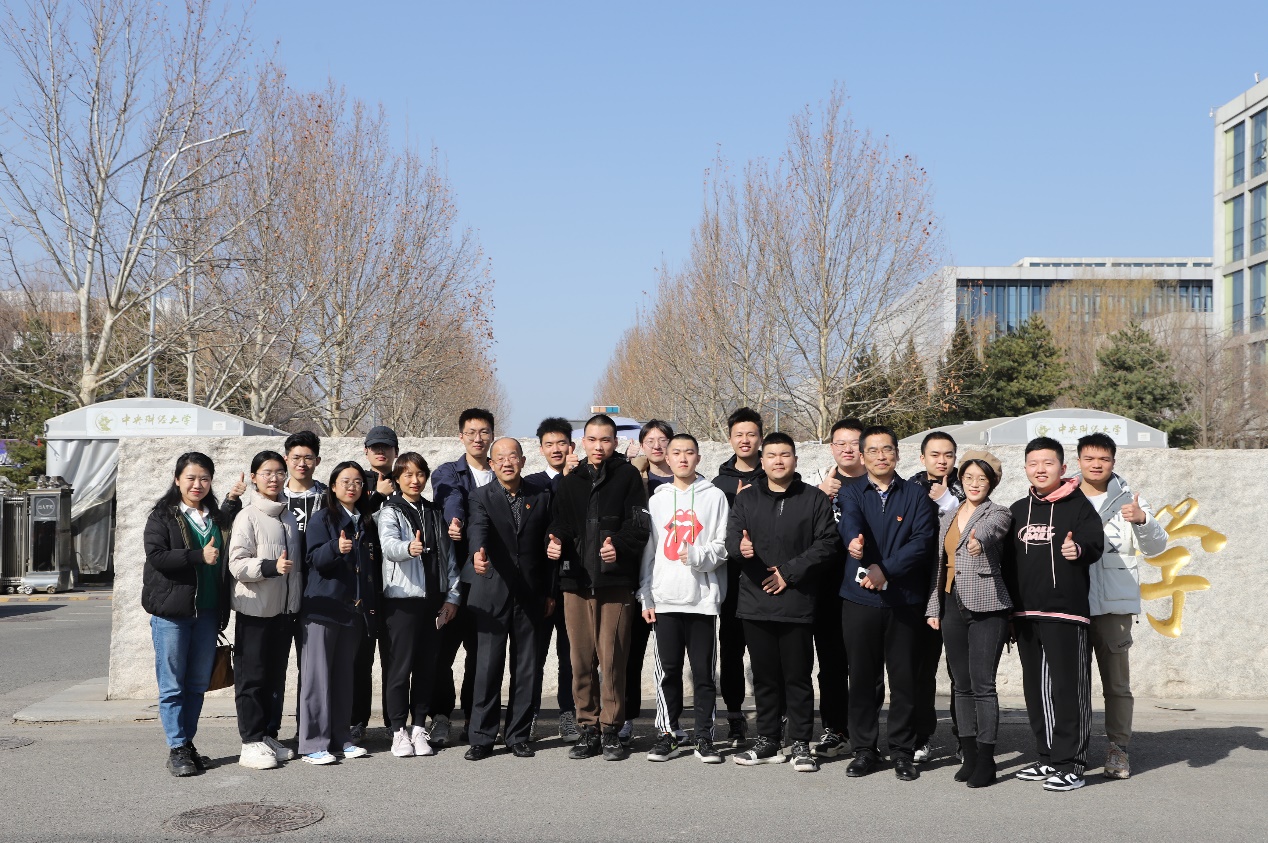3月3日下午,Beat365官方网站党委书记肖鹏、团委书记张驰、2019级辅导员徐燕妮以及学生代表一起欢送即将踏上新征程的张宇恒同学。