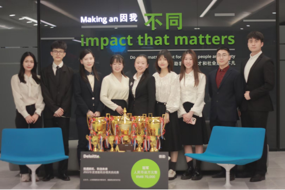 2023年4月18日,第18届德勤税务挑战赛举行了隆重的颁奖仪式。Beat365官方网站派出的李函育、刘书妤、周宇翔、滕明璨、童梦瑶、姚荔婷、纪浩然、任紫娴八名同学,与商学院郭湘同学、会计学院余尚同学一起组成两支队伍参加比赛。经过激烈角逐,由李函育、刘书妤、周宇翔、郭湘组成的队伍1荣获2022德勤税务精英挑战赛冠军,由滕明璨、纪浩然、童梦瑶、姚荔婷、余尚组成的队伍2荣获2022德勤税务精英挑战赛卓越奖,纪浩然同学荣获最佳方案奖,任紫娴同学作为个人赛道的选手与北京大学团队赛道的选手组队荣获2022德勤税务精英挑战赛亚军。