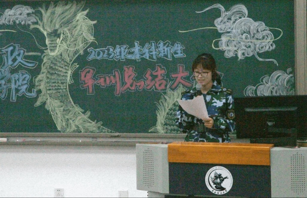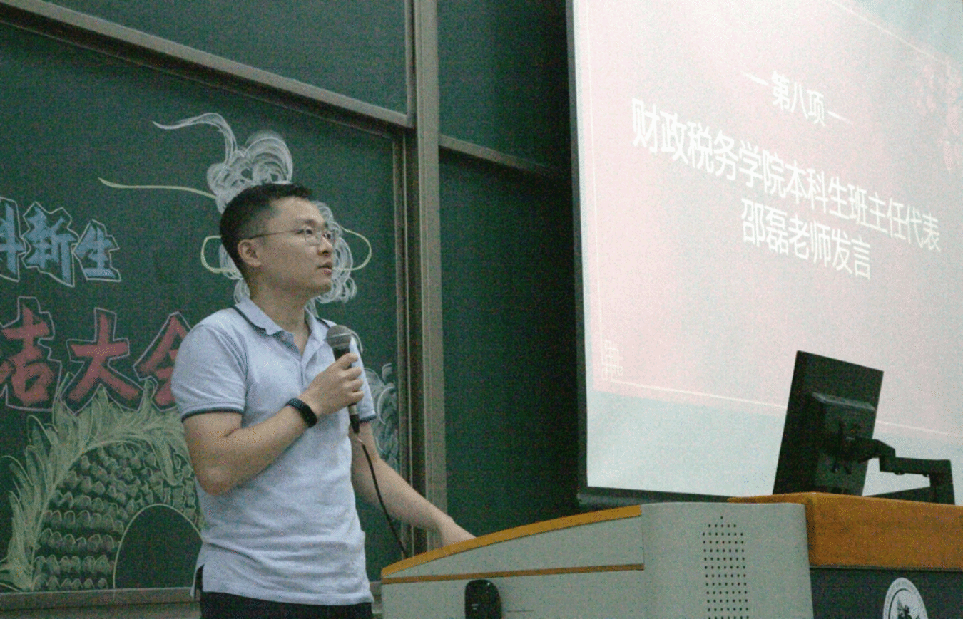 大会第三项,班主任邵磊老师发言。邵磊老师对战胜了疲惫与困难,坚持刻苦训练的财税23级新生们提出了表扬。同时,邵磊老师也为新生们送出了祝福与期待:军训时的收获成长与未来的大学生活息息相关,希望同学们能够将不怕困难、敢打硬仗的精神延续到后面的学习生活中,度过多姿多彩的大学四年。