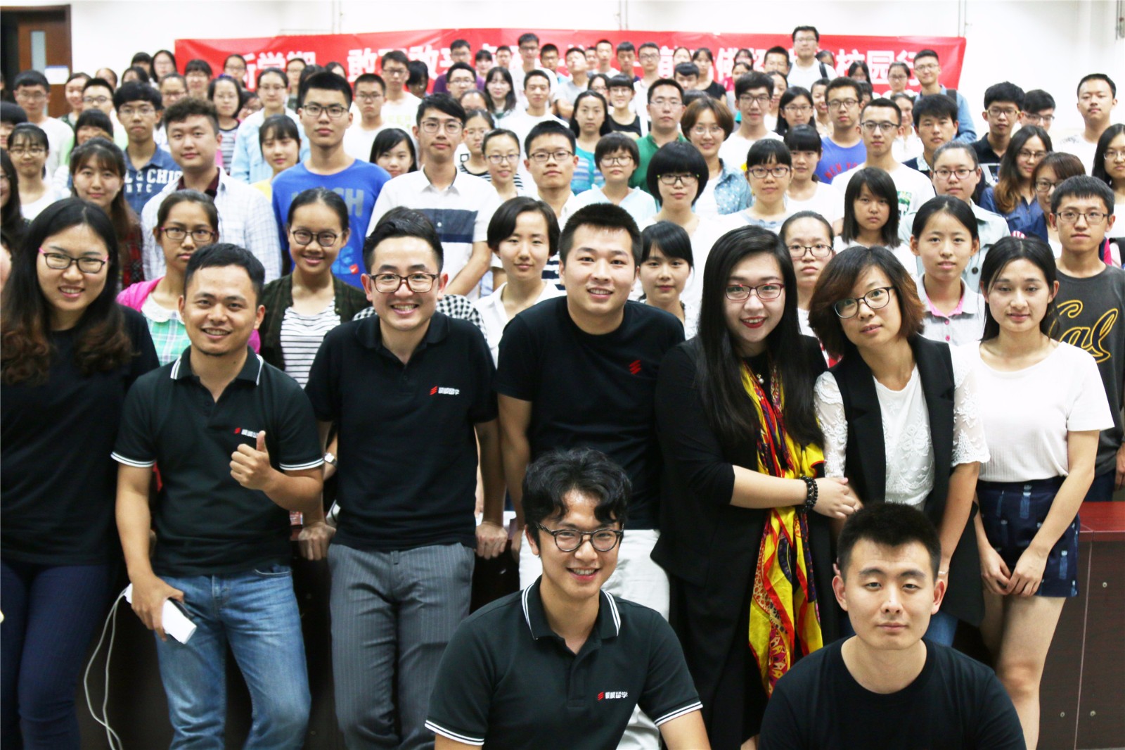 讲座结束后,顺顺留学全体工作人员与参与讲座的各学院同学合影留念,讲座在欢乐轻松的氛围中落下帷幕。同学们不仅收获了关于申请名校留学的宝贵经验,更在何亮先生的讲座中对自己的未来有了更深的思考。