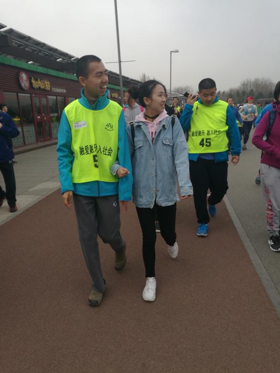 一路上,志愿者们陪同心智残障人士聊天说笑,相互追逐着做着小游戏,在疲惫时鼓励他们坚持走下去。这一路欢声笑语不断,欣喜的笑容不仅洋溢在这个特殊群体的脸上,更浮现在每个志愿者的脸上。提前走完全程的小组在终点处休息,志愿者们并没有与各自的服务对象分开,而是继续陪伴着他们直到家人前来带他们回家。尽管十公里的路走下来十分疲惫,但能够陪伴这些心智残障人士,给他们送去欢乐,志愿者们甘之如饴。