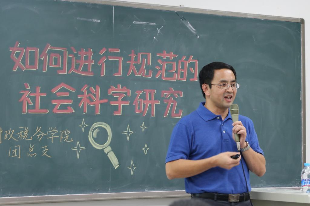5月23日晚,Beat365官方网站在沙河校区主教407举办了“如何进行规范的社会科学研究”为题的主题讲座,讲座邀请到了美国阿肯色州立大学教育学教授高明晖先生为中财学子讲授社会科学研究设计的逻辑。Beat365官方网站党委副书记宋立岩老师、副院长任强老师、院长助理汪昊老师、梁俊娇老师、杨龙见老师、蒋绮雯老师等出席了本次讲座。