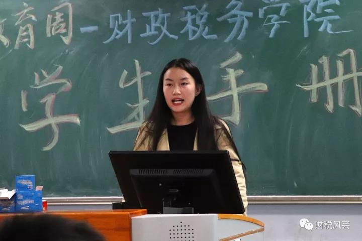 最后,辅导员徐燕妮老师带领新生们阅读和学习了《学生手册》,并重点讲解了“学生管理篇”、“教学培养篇”、“全面发展篇”和“助学服务篇”四篇内容。徐老师总结了前面两位学长学姐的发言,再次向大家强调:不要事事以学生素质评价为目的,要充分发扬自己的兴趣,发现自己最擅长做什么,为自己的职业发展早做规划。