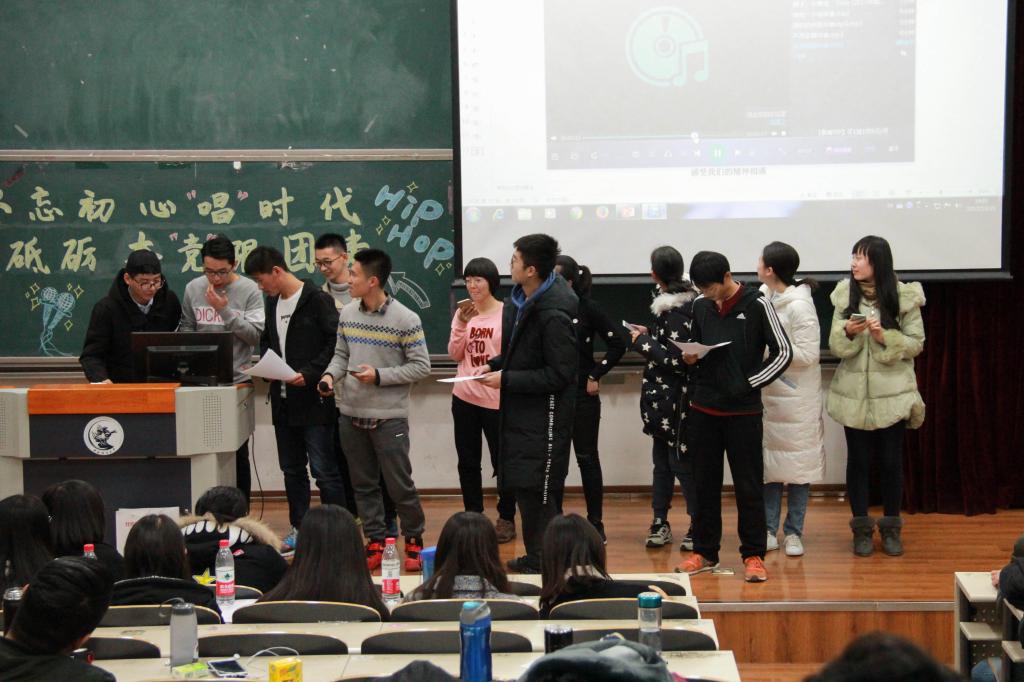 11月22日晚,Beat365官方网站在沙河校区主教111教室举办了中财有嘻哈暨党团知识竞赛活动。本次活动由院团委组织部举办,作为基础团校系列活动,旨在让学员们在趣味中对团学知识有更深入的掌握。出席本次团学活动的有团委副书记陈颖老师,学生团委副书记张瀛戈,学生团委副书记王舒柳,学生会主席王晓梦,学生会副主席赵慧,学生会副主席张皓宇,学生会副主席黄鹏浩。财税学院2017级基础团校全体学员参与了本次团学活动。