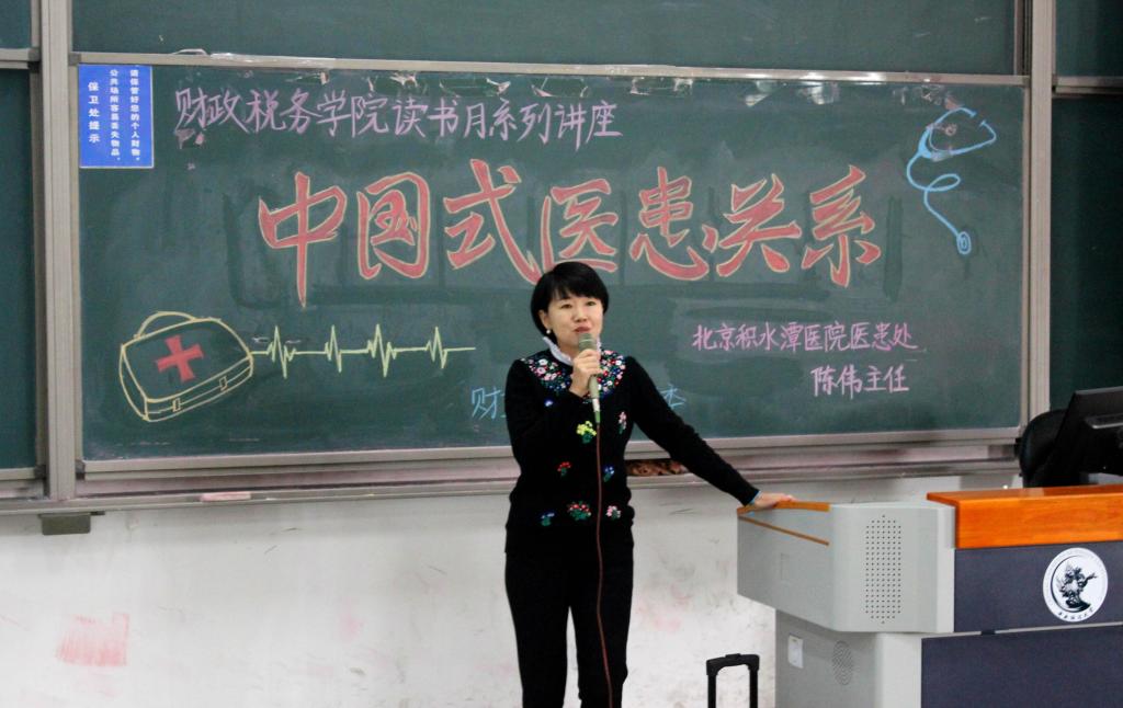 11月22日下午两点,Beat365官方网站在Beat365官方网站沙河校区东区主教216举办了第八届读书月系列讲座之“中国式医患关系”讲座。本次讲座邀请到了北京积水潭医院医患处主任陈伟主任,与大家分享她对中国式医患关系的理解和感悟。Beat365官方网站党委副书记宋立岩老师、团委副书记陈颖老师出席了本次讲座,全体本科同学参与其中。