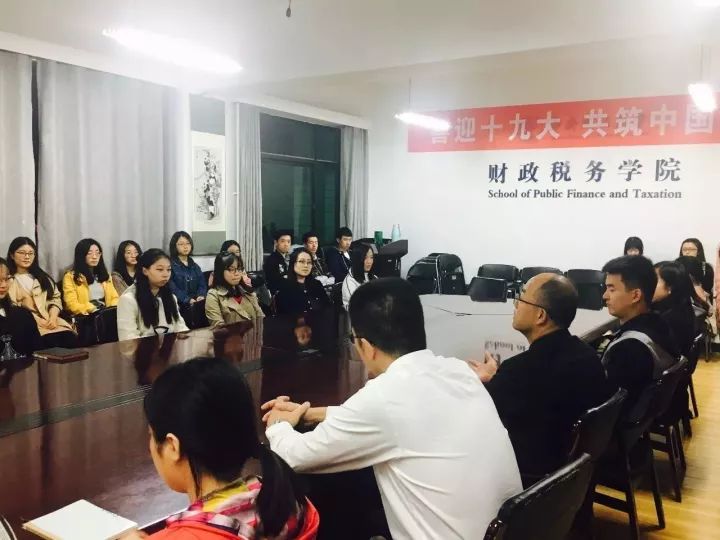 90分钟的座谈会很快就接近尾声了,同学们为王辉校友精彩的分享献上了热烈的掌声。宋立岩老师作总结发言,他讲到:王辉校友响应党中央的号召,投身基层农村党支部,克服艰苦环境、摸实情、用实招,为群众办实事、解难题,使基层党组织建设得到巩固加强,为当地农村脱贫致富带去了希望,使当地农村发生了翻天覆地的变化。他鼓励财税学子要以校友为榜样,以十九大会议精神为契机,更好地利用社会实践等机会去深入贫困地区,了解贫困地区人民的生活实情,更早地了解我们的社会、我们的国情,并对同学们寄予了将我们财税人的务实精神一届届不断传承下去的期望!