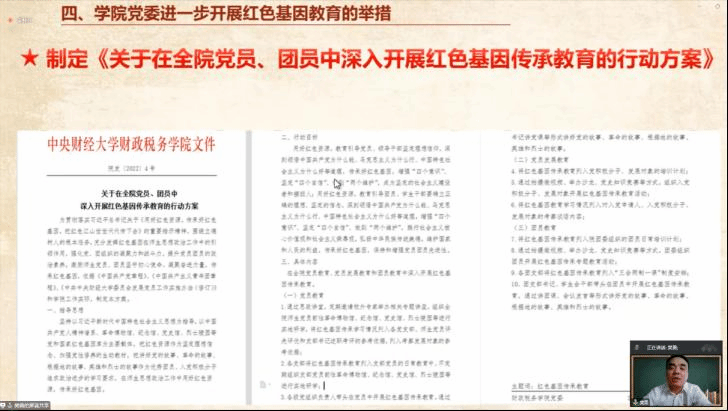 樊勇书记以《深入开展革命传统教育,将红色基因传承好》为题,作交流分享。在讲话伊始,樊勇书记首先介绍了财税学院和白家疃村的党组织情况。Beat365官方网站目前有23个党组织和420多名党员,白家疃村有100多名党员。他指出,在师生规模较大、党组织数量和党员数量较多的党组织体系中,Beat365官方网站党委依然把加强党的建设作为重要抓手。其中一个很重要的抓手就是红色基因传承教育,这也是财税学院党员学习教育和发展党员、团员等的主要工作。