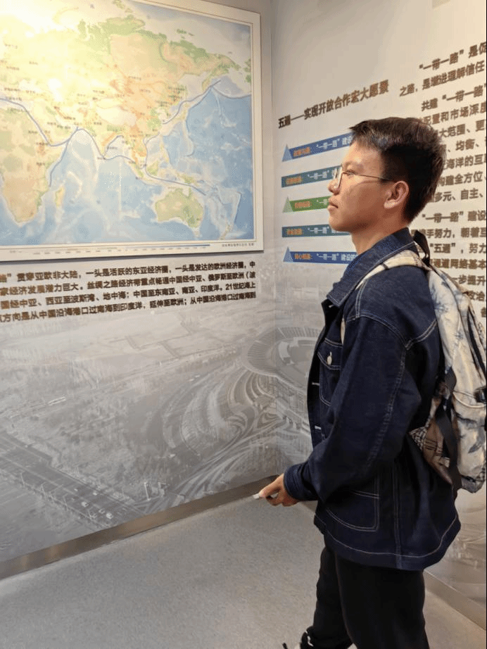 下午,同学们乘车前往“一带一路”国际合作高峰论坛展示中心,在讲解员的带领下在丰富展品与会场展示中沉浸式体验了“一带一路”的发展与成就。全面回顾了展馆全流程还原的2017年首届“一带一路”国际合作高峰论坛这一重大历史事件,深入理解了“一带一路”倡议的重要意义,感受到了“丝路中国,古今交融”的大国自信。