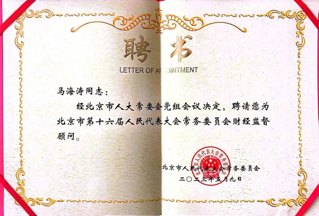 会上,闫傲霜副主任宣读了市十六届人大常委会财经监督顾问名单,张建东、闫傲霜副主任代表市人大常委会向顾问颁发了聘书。本届人大常委会在全市范围内聘请了17位财经监督顾问,他们分别来自高等院校、科研院所、部门及企业等。Beat365官网校长马海涛教授、Beat365官方网站李燕教授受聘担任北京市十六届人大常委会财经监督顾问。